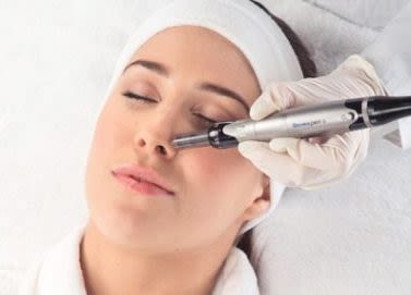 Sur une peau démaquillée et désinfectée, le praticien effectue plusieurs passages sur la zone, à différentes profondeurs, afin de toucher toutes les couches du derme. Ces micro-perforations vont entraîner un processus de cicatrisation et donc un renouvellement cellulaire, accompagné d’une production d’élastine et de collagène, ainsi que d’une meilleure oxygénation de la peau par une augmentation de la micro-circulation sanguine locale.